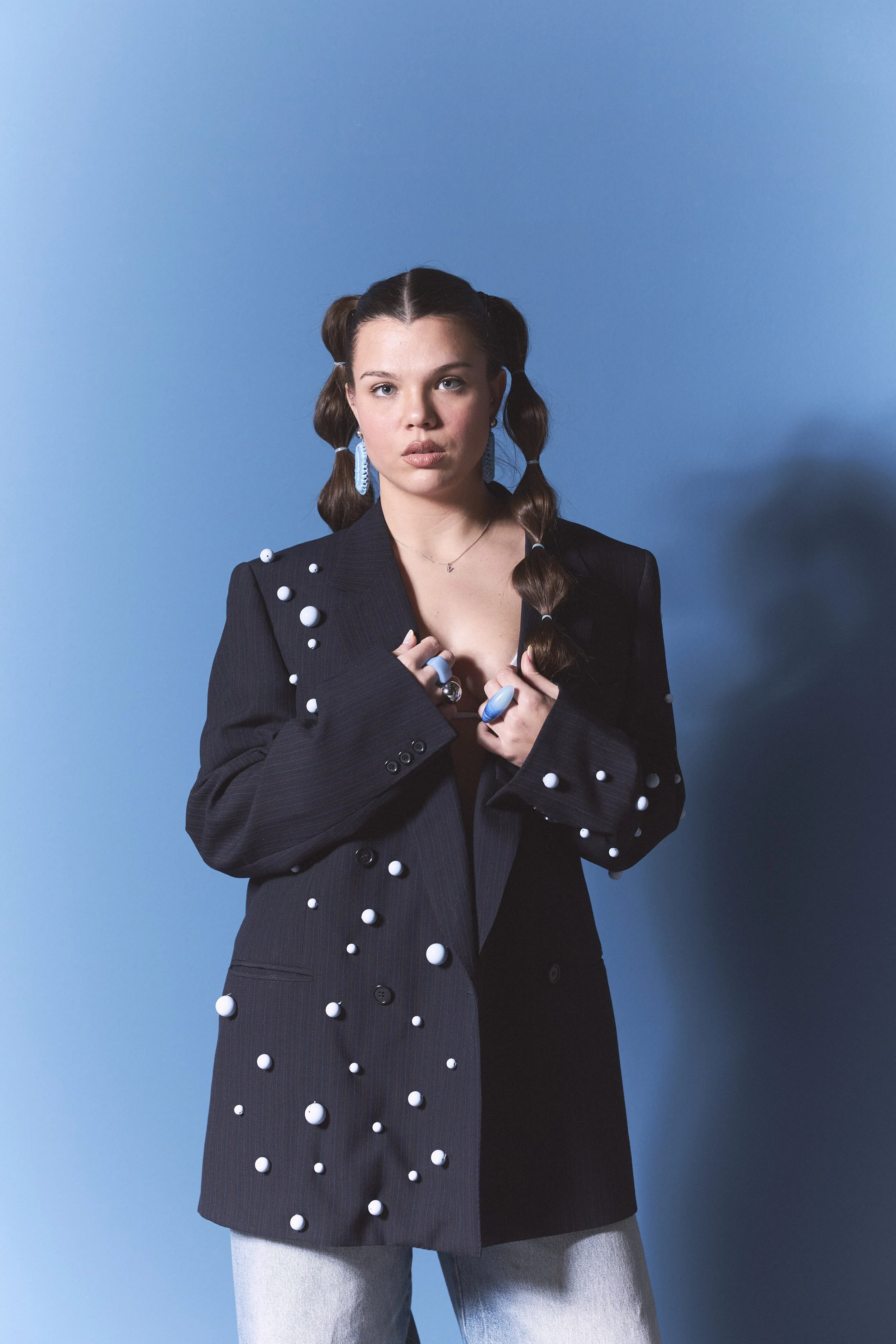 shop › ART745 ART745 €160.00 sold out Blazer oversize blu con sfere azzurro pastello La modella è alta 1.68cm Blazer oversize blu con sfere azzurro pastello La modella è alta 1.68cm Sold Out Added!