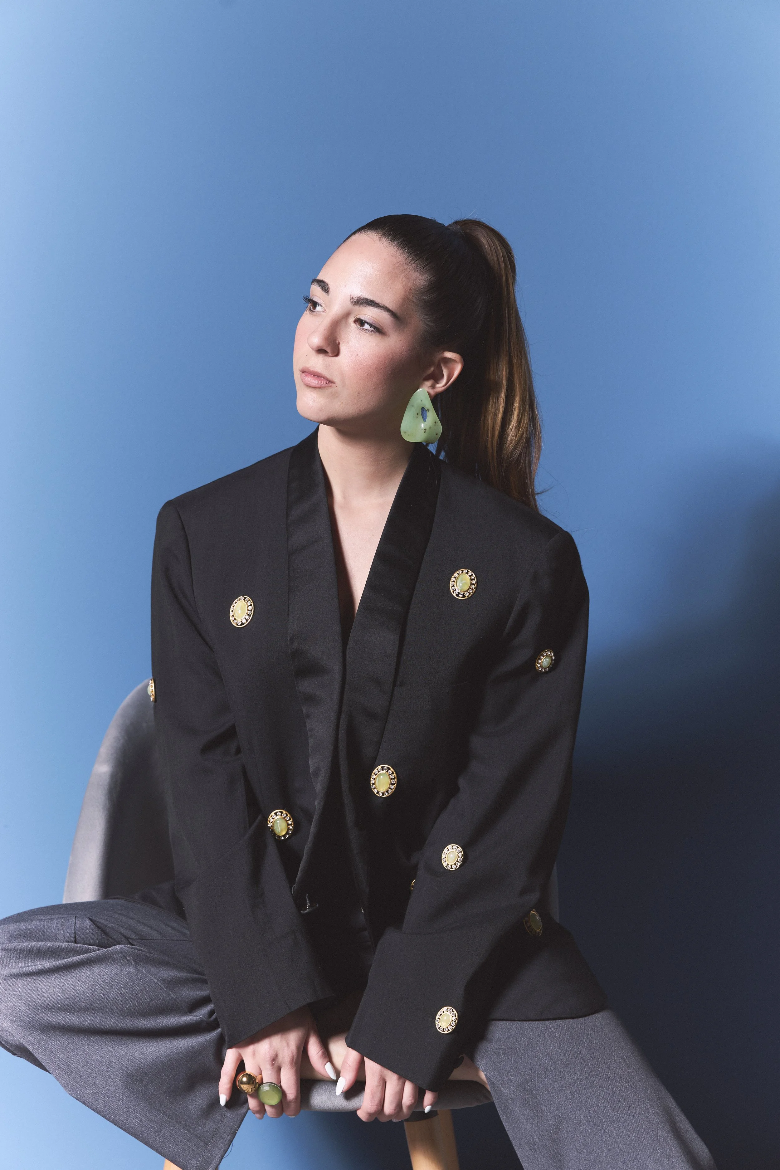 shop › ART690 ART690 €140.00 sold out Blazer oversize nero con bottoni oro e verde chiaroLa modella è alta 1.58cm Blazer oversize nero con bottoni oro e verde chiaroLa modella è alta 1.58cm Sold Out Added!